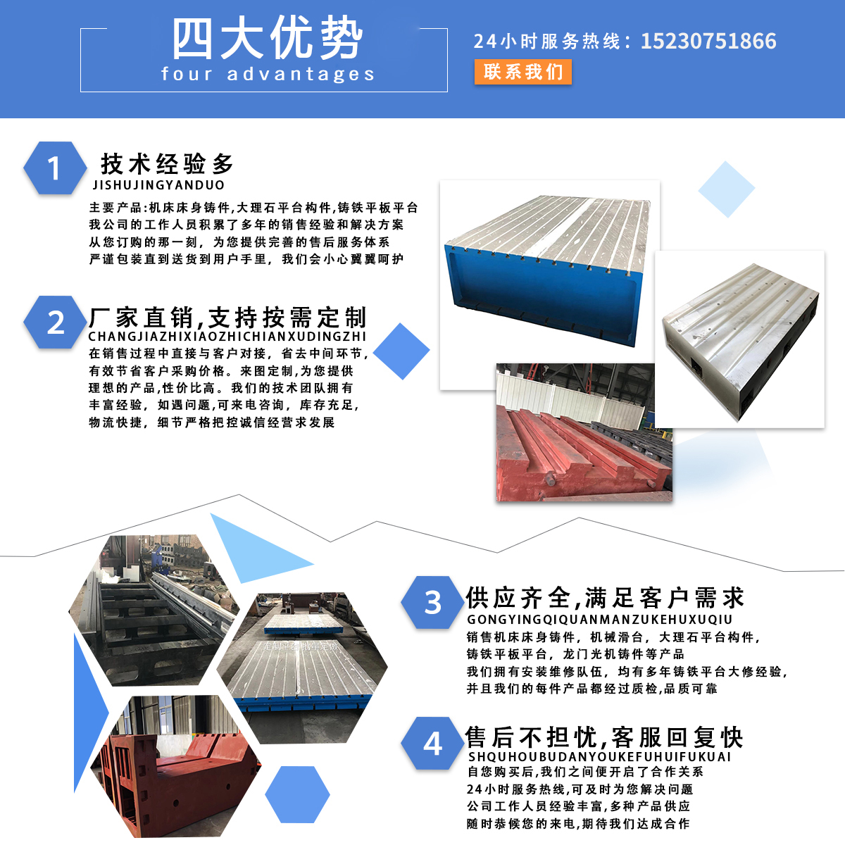 鑄鐵平板平臺,機床床身鑄件,機械滑臺,大理石平臺構件,龍門銑光機鑄件等你來購!